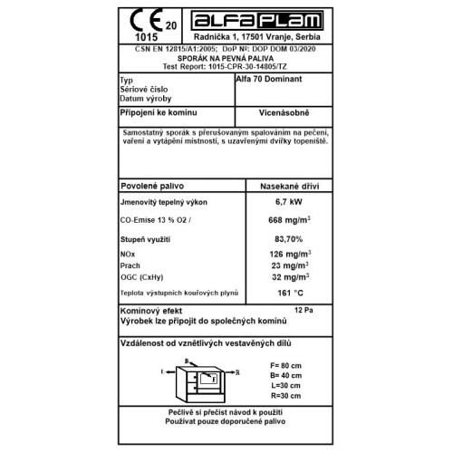 Vysoká kvalita konstrukce, použitých materiálů i zpracování Vás nikdy nenechají chladnými. Velmi jednoduchá obsluha a moderní design dotváří účelný koncept značky ALFA PLAM, ať již spalujete dřevo, či ekobrikety. ALFA PLAM je kvalita testovaná v českých i německých zkušebních ústavech (SZú Brno, RRF Oberhausen).