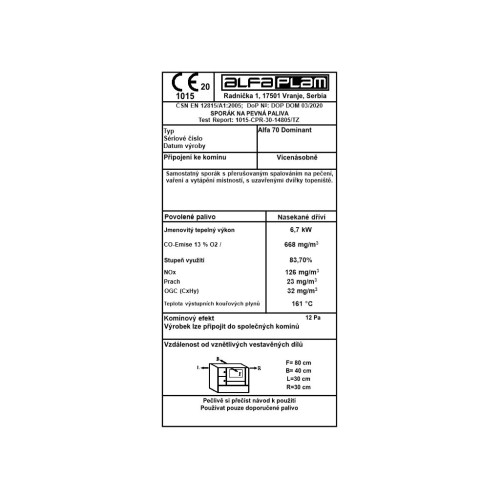 Vysoká kvalita konstrukce, použitých materiálů i zpracování Vás nikdy nenechají chladnými. Velmi jednoduchá obsluha a moderní design dotváří účelný koncept značky ALFA PLAM, ať již spalujete dřevo, či ekobrikety. ALFA PLAM je kvalita testovaná v českých i německých zkušebních ústavech (SZú Brno, RRF Oberhausen).