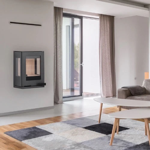 Krbová kamna FORNAX WALL zaujmou svou subtilností, prostorovým pohledem na oheň díky třístrannému prosklení, líbivým designem kubického tvaru a možností zavěsit kamna na zeď. Vhodná do nízkoenergetických domů. Elegantní a kompaktní krbová kubického tvaru, vhodná pro každý interiér. Krbová kamna jsou vhodná pro nízkoenergetické domy. Disponují systémem centrálního přívodu externího vzduchu. Odvětrávaná designová klika umožňuje manipulaci během topení. Dveře je možné aretovat v poloze otevřeno. Ve standardu je možné zapojení horního nebo zadního odvodu spalin. Díky sekundárnímu přívodu vzduchu je sklo dvířek omýváno, a tak nedochází k usazování nečistot. Spalovací komora je vyložena betonovými tvarovkami. Regulaci primárního a sekundárního přívodu vzduchu lze řídit jediným ovládacím prvkem.