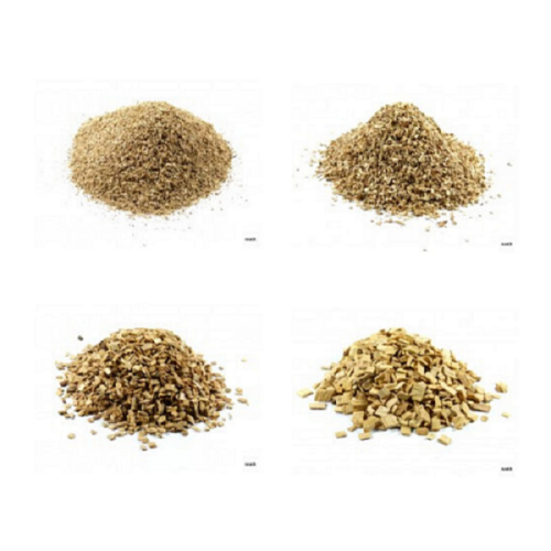 Balíček obsahuje 1 kg pilin, 1 kg drti, 1 kg štěpky 1/4, 1 kg štěpky 2/16