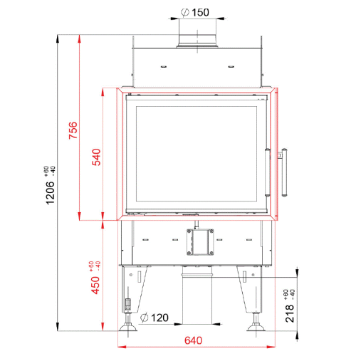 • Krbová vložka má oboje dveře s otevíráním do strany, jedny plné, rovné a druhé prosklené v rohovém provedení (jednodílné ohýbané sklo)