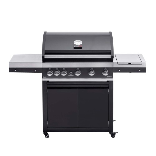 Velký gril v krásném designu a se skvělou výbavou. Litinový grilovací rošt s deskou garantuje rovnoměrný přenos tepla a zajistí perfektní propečení masa. Využijte velký výkon pěti hlavních hořáků nebo zadního infračerveného hořáku pro pomalé opékání pokrmů na otočném rožni. K dispozici je boční hořák, zapuštěný do police, který obstará přípravu omáček a příloh ke grilovaným pokrmům.