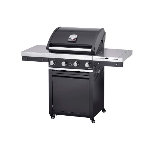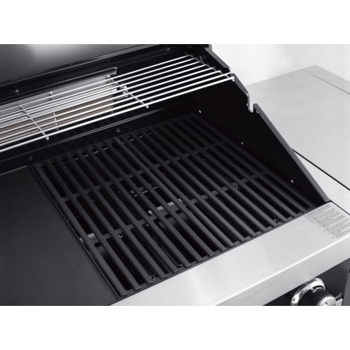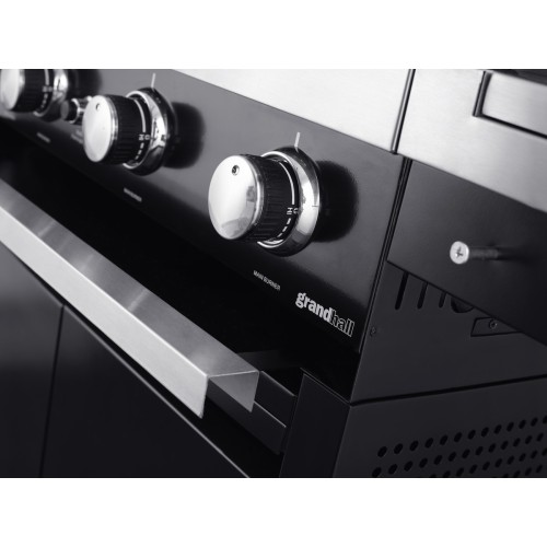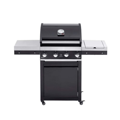 Kvalitní a pěkný plynový gril se 4 nerezovými hořáky a 1 postranním bočním hořákem. Gril pro ty, kteří nehledají velký gril, avšak požadují výkon, kvalitu a pěkný vzhled. Čtyři výkonné hořáky jsou zárukou dostatečného tepla na grilovacím roštu. Přílohy, omáčky, maso a polévky pohodlně připravíte na bočním hořáku. Celolitinový grilovací rošt o rozměru 60x45 cm je složen ze 2 roštů a 1 desky pro grilování drobných pokrmů a jídel, které by standardním roštěm propadly (omelety, klobásky, zelenina, mořské plody). Samozřejmostí je přehledný teploměr ve víku grilu, ohřívací rošt a předem výsuvná zásuvka pro přebytečný omastek. Skříňka s 1-křídlovými dvířky poslouží pro uložení plynové láhve a případně základního příslušenství.