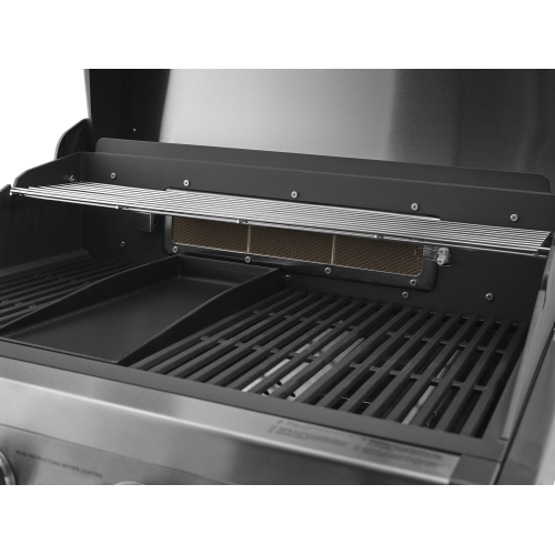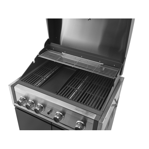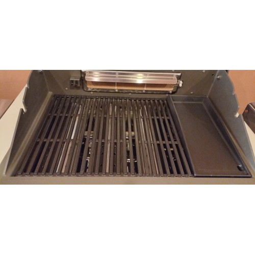Elegantní, kvalitní, designově zdařilý a velmi dobře vybavený vestavný plynový gril s velkou grilovací plochou v exkluzivním designu pro náročné milovníky grilování. Čtyři výkonné nerezové hořáky doplňuje zadní infračervený hořák pro opékání pokrmů (drůbeže, gyrosu, hranolek) na otočném rožni (příplatkové příslušenství - není součástí dodávky grilu). Vylepšený systém distribuce tepla zajistí rovnoměrné šíření tepla napříč grilovacím roštem, což nejen zlepší výsledky grilování, ale rovněž minimalizuje riziko vznícení omastku či šťáv z grilovaných pokrmů. Gril je vybaven celolitinovým grilovacím roštem, přičemž rošt tvoří ze 3/4 grilovací mřížka a z 1/4 litinová plancha. Ta umožní grilovat pokrmy, které by standardním roštem propadly (zelenina, vejce, menší kousky masa, klobásky, mořské plody). Celkový elegantní vzhled grilu podrtrhují kovové ovládací knoflíky. Ke grilu je dodáván připojovací set s hadicí a montážní konzole. U vestavných grilů doporučujeme zhotovit pevný přívod plynu (PB). Vlastní obestavbu grilu lze vybavit dvířky z nerez oceli. Gril je vybaven 4 nožičkami, díky kterým jej lze, coby samostatně stojící gril, postavit na jakýkoliv pevný a nehořlavý povrch bez nutnosti jeho obestavby či zhotovení výřezu v pracovní desce.