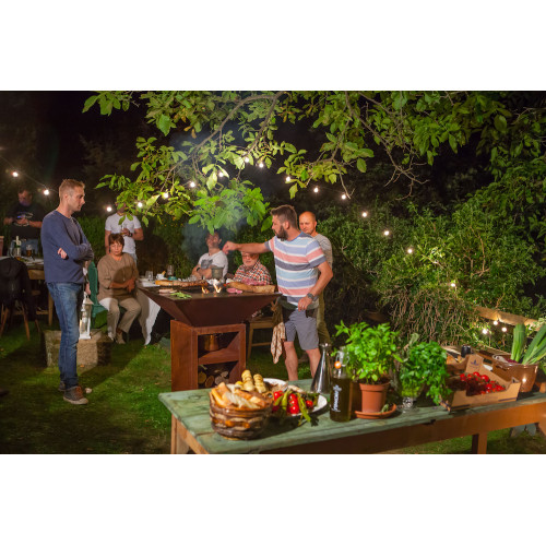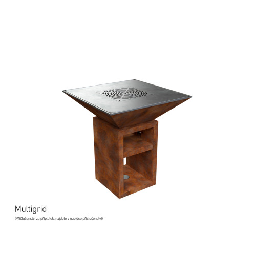 Gril Vulcanus Pro910 má patentovaný design s tělem z patinující oceli COR-TEN. Vydrží jakékoliv venkovní podmínky a jeho topeniště je pro větší komfort při grilování vyložené akumulační vložkou. Přípravu jídla vám tak usnadní lepší cirkulace horkého vzduchu, tepelná stabilita a snížená spotřeba dřeva.