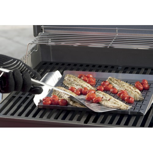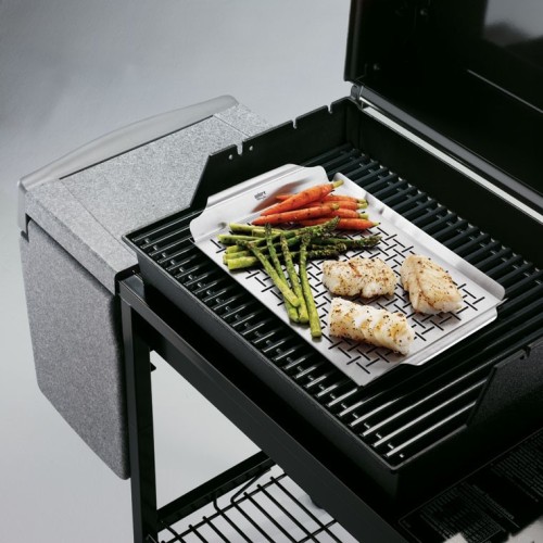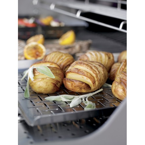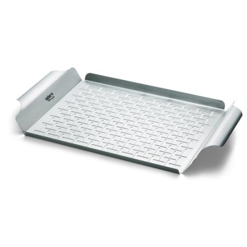 Příslušenství Weber Deluxe představuje ty nejkvalitnější doplňky ke grilování ve své kategorii. Tak je tomu i u této velké grilovací pánve o rozměrech 47 x 29 cm. Krevety a mušle opečené na pánvi v pohodlí vaší zahrady. Opečte zeleninu, když se Váš steak griluje vedle. Použijte grilovací pánev Deluxe, aby Vaše jídlo získalo nezaměnitelnou chuť kouře z grilování. Ideální pro větší i menší kousky zeleniny.