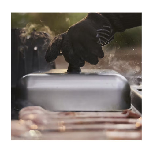 Náš tip: Připravte si na planchi burgery, položte na ně plátek sýra a těsně před přiklopením poklice stříkněte na rozpálený tál trochu vody nebo piva. Vzniklý „parní šok“ pod XL poklicí sýr okamžitě roztaví do všech záhybů masa. Poklice je vybavena bytelným madlem s tepelnou izolací, takže manipulace je bezpečná i v nejvyšším žáru.