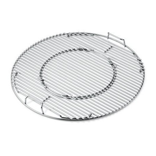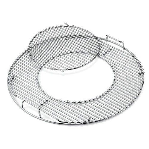 Trojmo niklovaný grilovací rošt Weber s vyměnitelným středem. Pro grily na dřevěné uhlí o průměru 57 cm tvoří základ Gourmet BBQ Systému. Po vyjmutí středního dílu můžete získat možnost udělat z vašeho grilu plnohodnotnou kuchyni. Stačí vyměnit středovou část za pánev 7421 a připravit si tak lahodnou snídani s volskými oky a slaninou.