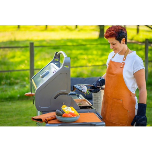 Pro bezpečné zavěšení rukavice po grilování slouží bavlněné poutko ve tvaru rybího hřbetu. Rukavice je vysoce funkční a vzhledově pěkná, přičemž je zároveň moderní a robustní. Tepelná ochrana (žáruvzdornost) odpovídá normě PSA (Persönlichen Schutz Ausrüstung) nařízení 2016/425 a je dle norem EN 388 a EN 407 certifikována notifikovaným zkušebním ústavem. Dle normy EN 407 je žáruodolnost rukavice dokonce na nejvyšším stupni 4 a tudíž je certifikována pro teploty do 350°C, dočasně do 500°C. Proto rukavice poslouží bezpečnému grilování za každé situace.