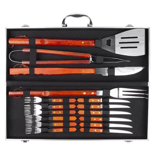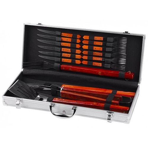 Sada obsahuje veškeré nářadí potřebné pro bezproblémovou přípravu a konzumaci grilovaných jídel.