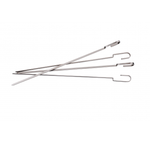 Nové grilovací jehly OUTDOORCHEF jsou vyrobeny z kvalitní nerezové oceli a pohodlně je můžete použít ve všech modelech grilů OUTDOORCHEF. Zploštělý tvar zajišťuje, že se jídlo při grilování/manipulaci neprotáčí.