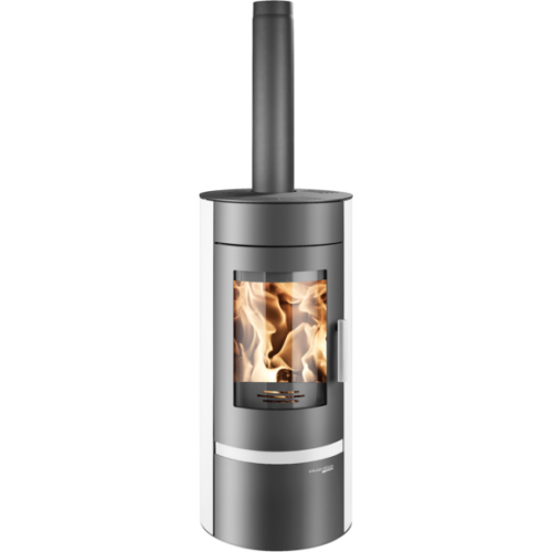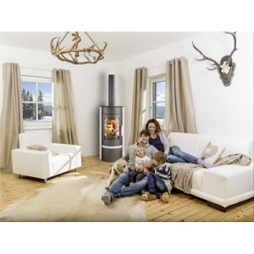 Kamna nemusí být jen hranatá, půdorys některých doslova opíšete kružnicí. Díky jejich tvaru můžete krbová kamna bez problémů postavit do rohu. Připojení kouřovodu je vrchní.