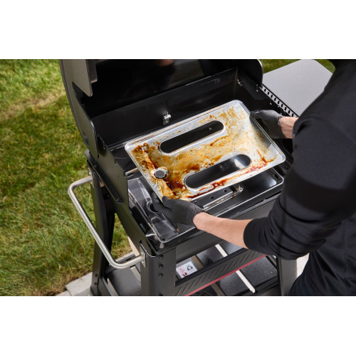 Náš tip: Výměnu vložky provádějte pravidelně, ideálně před každým dlouhým uzením (low & slow). Předejdete tak riziku vzplanutí nahromaděného tuku a zajistíte správné proudění vzduchu v grilu. Vložka je konstruována tak, aby do ní stékal tuk, zatímco popel z pelet zůstává oddělen v sousední části systému, což usnadňuje následnou recyklaci.
