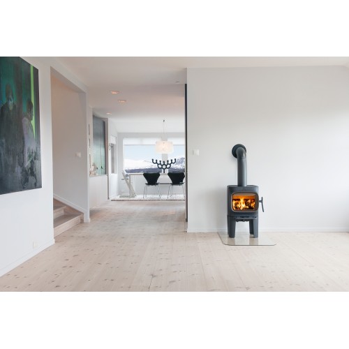 Navzdory malým rozměrům jsou Jøtul F 105 kamna s velkým charakterem. K charakteristickým rysům bezesporu patří velká horizontální dvířka, která umožňují nádherný výhled na oheň. Regulace přívodu vzduchu je jednoduchá a intuitivní. Model se dodává s tradičními nožkami a lze ho doplnit příslušenstvím na objednávku: límcem a horní deskou z mastku.