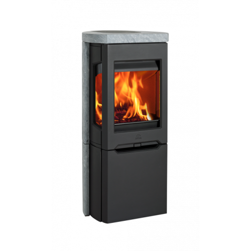 Jøtul F 165 S má topeniště s velkým bočním prosklením, mastkové obložení a podstavec s litinovými dvířky. Na vnitřní stranu dvířek můžete přimontovat také krbové nářadí, vyráběné přímo na míru k tomuto modelu (příslušenství na objednávku). Díky mastkovým bokům a horní desce nejen vypadá velice dekorativně, ale také hřeje ještě dlouho poté, co oheň v topeništi vyhasl. Tato kamna jsou ideální volbou pro moderní bydlení, skvěle se hodí zejména do nízkoenergetických staveb a k topení na nízký výkon. Dosahují optimálního spalování i při 3 kW.
