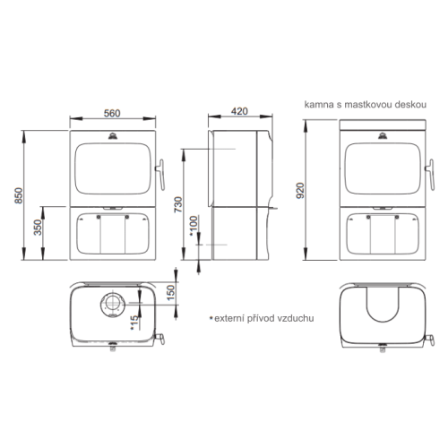 - Průměr kouřovodu: Ø 150 mm
