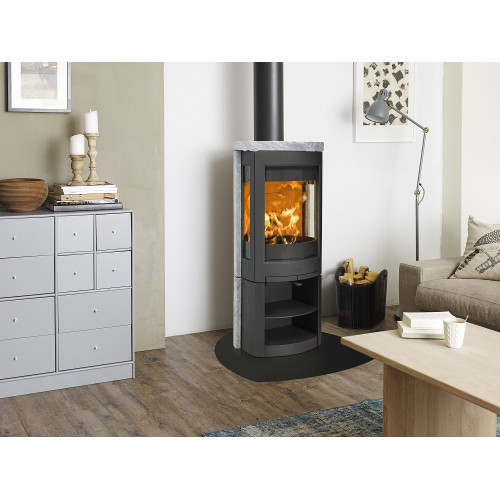 Jøtul F 377 Advance je obložený mastkovými komponenty, které jsou nejen krásné a elegantní, ale také mají vynikající schopnost akumulovat teplo. V podstavci se ukrývá praktický úložný prostor s odnímatelnou poličkou.