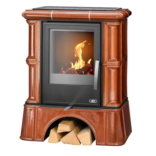 Kachlová kamna ABX Bavaria s výměníkem, černý korpus, kachlový sokl, opláštění kachle kaštan