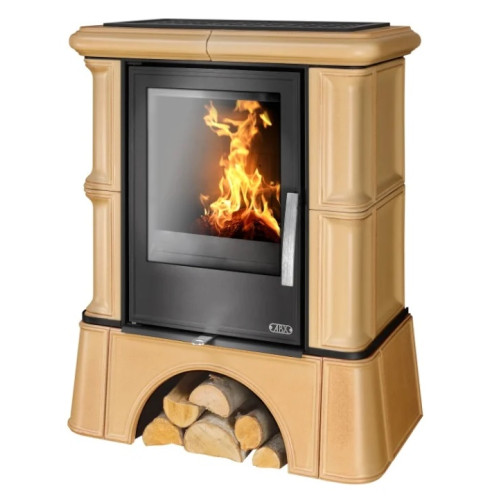 Kachlová kamna klasického designu s litinovým čelem a dvířky s teplovodním výměníkem
