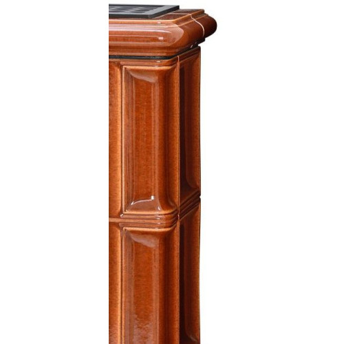 - Kachlová kamna klasického designu s teplovodním výměníkem (6,9 voda + 3,5 vzduch), litinovým čelem a dvířky.
