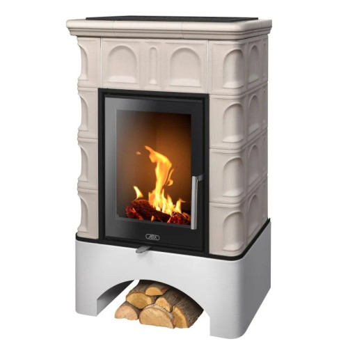 Kachlová krbová kamna ABX Britania rovný sokl, černý korpus, opláštění kachle ahornweiss