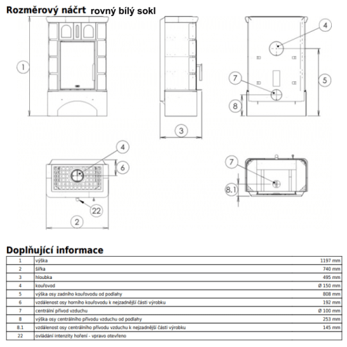 - Kachlová kamna klasického designu s litinovým čelem a dvířky.