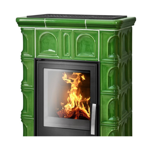 Kachlová krbová kamna ABX Britania kachlový sokl, černý korpus, opláštění zelená kachle moosgrün