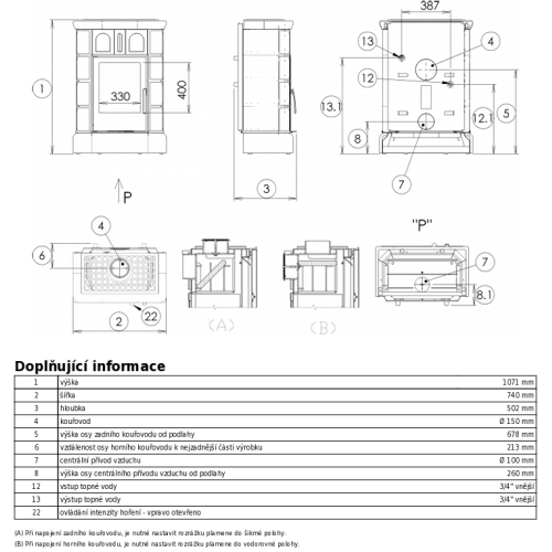 • vnější průměr kouřovodu - ⌀150 mm