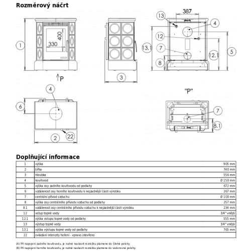 • vnější průměr kouřovodu - ⌀150 mm