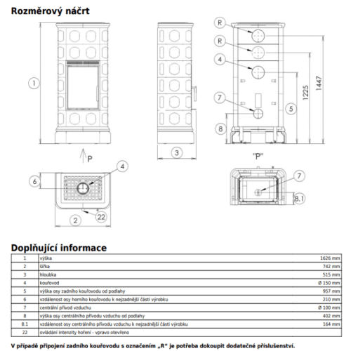 - Možnost využití pouze zadního vývodu kouřovodu.