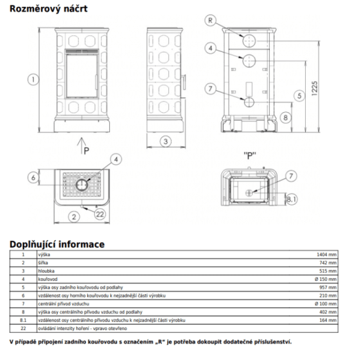 - Možnost využití pouze zadního vývodu kouřovodu.