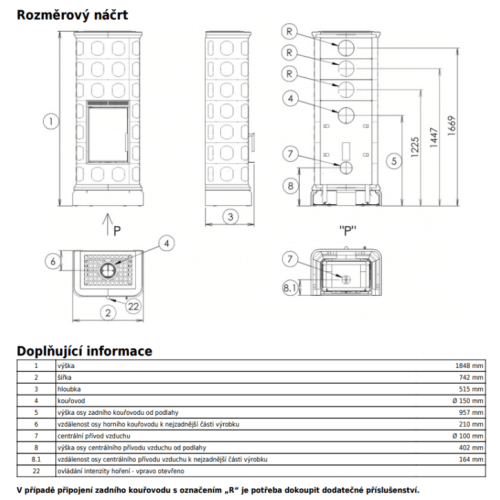 - Možnost využití pouze zadního vývodu kouřovodu.