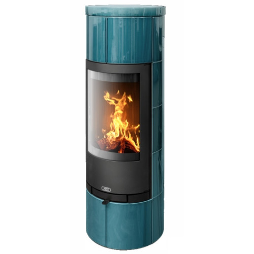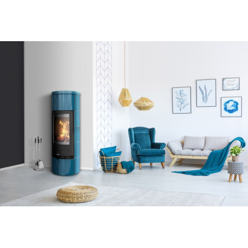 Kachlová kamna ABX Kastilie černý korpus, opláštění kachle aquamarín