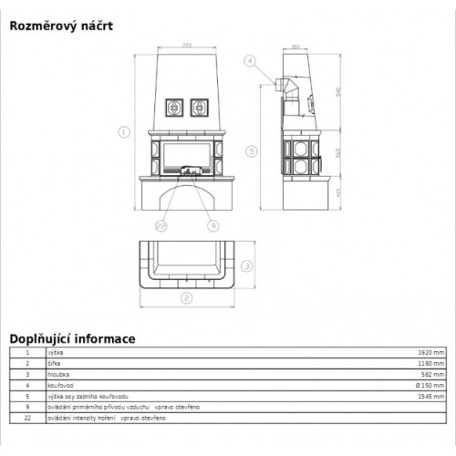 - vnější průměr kouřovodu - ⌀150 mm