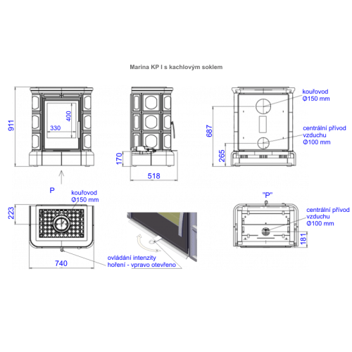 - vnější průměr kouřovodu - ⌀150 mm