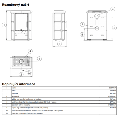 - Kamna mají přívod terciálního vzduchu a mají možnost připojení hrdla pro přívod vzduchu z exteriéru.