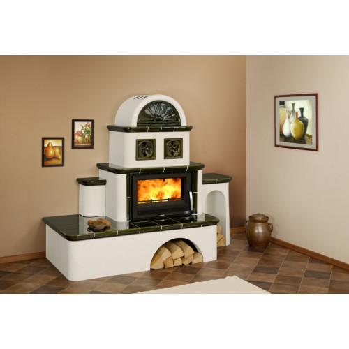 Kachlová pec ABX Oxford s výměníkem 7kW černý korpus, opláštění kachle zelená - pravé provedení