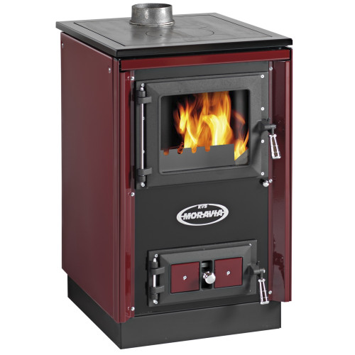 Kamna na pevná paliva bordó, chromované doplňky, broušená plotna