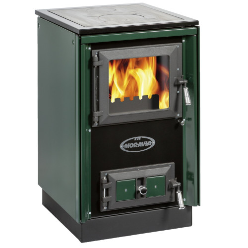 Kamna na pevná paliva zelená, chromované doplňky, broušená plotna