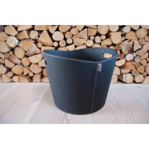 koš potažený černou látkou s bílým prošíváním po obvodu