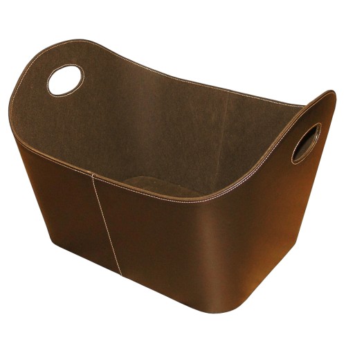 Kvalitní koženkový koš na dřevo od rakouského výrobce Lienbacher v moderním stylu, barva hnědá s bílým prošíváním. Vnitřní část tohoto koše na dřevo je z odolné netkané textilie.