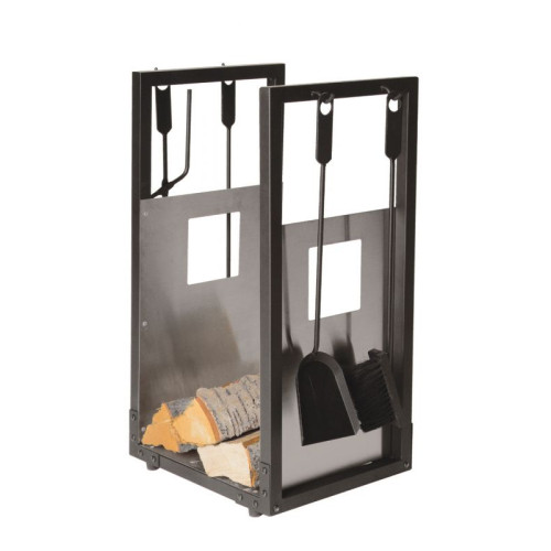 Sada obsahuje úložný prostor - koš na dřevo, pohrabáč,kleště, lopatku a smetáček, provedení černá, boky nerez.