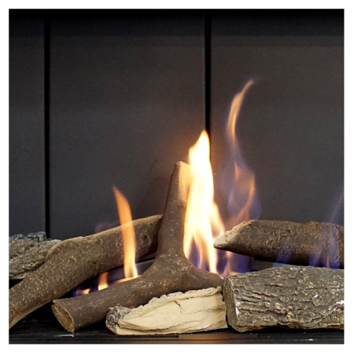 Dekorační keramické prvky ve formě dřeva jsou ideální ozdobou každého plynového krbu. Dekorace jsou odolné vůči vysokým teplotám. Dekorativní prvky by neměly blokovat hořáku. Umístění dekorace v plamenech, mohou mít vliv na tvorbu sazí.