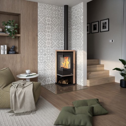 Kamenné sloupky a masivní horní deska dělají tyto kamna výjimečné.