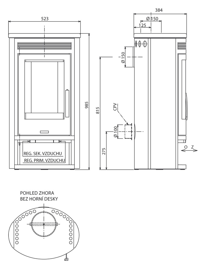 Možnost využití horního a zadního vývodu pro kouřovod.
