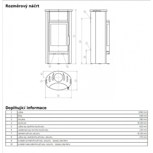 - rozměry topeniště [š x h] - 320 x 260 mm