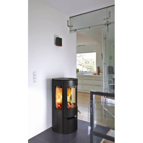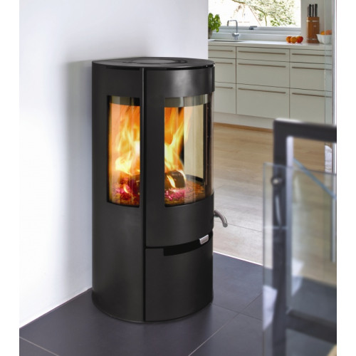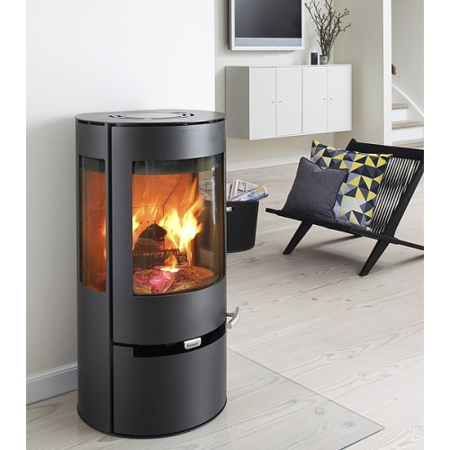 ORIGINÁL JE JENOM JEDEN – Skvost z dílny dánských vývojářů krbových kamen Aduro – kulatá konvekční krbová kamna Aduro 9 se spodní zásuvkou, mají na obou stranách spalovací komory velké prosklené otvory, které zajišťují maximální možnost pohledu na krásnou hru plamenů doslova ze všech stran. Oba boční skleněné průzory jsou opatřeny svým vlastním oplachem skla sekundárním přívodem vzduchu (sklo dvířek samozřejmě také), které zajišťují maximální možnou čistotu skel a jsou podle potřeby regulovatelné.