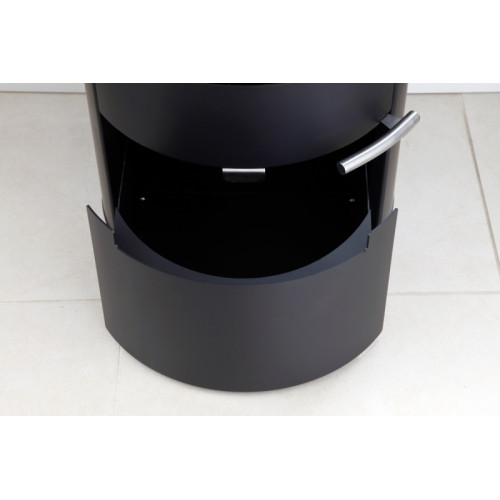 Spodní část kamen (pod spalovací komorou) tvoří velice praktický vysouvací zásobník na kolejničkách, který se používá na uskladnění několika polen, třísek, podpalovače, rukavice apod.. Prostě všech věcí, které u kamen musí být, ale není na ně zrovna hezký pohled. Díky tomuto zásobníku je máte vždy po ruce a přitom Vám “nehyzdí” interiér.
