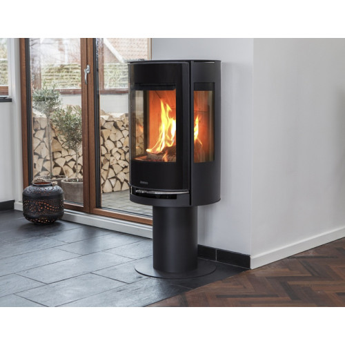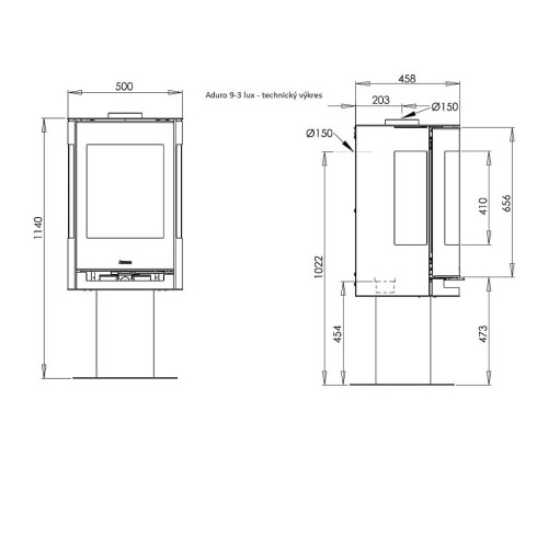 Kulatá konvekční krbová kamna Aduro 9.3 Lux vychází ze základního modelu Aduro 9, kterému se odstranil spodní vysouvací zásobník a spalovací komora je postavena na piedestalu, či tzv. “kuří nožce”, což krbová kamna zvětšuje a pocitově zužuje. Výraz kamen dokonale doplňuje luxusní keramické sklo přes celá dvířka. Kamna mají na obou stranách spalovací komory velké prosklené otvory, které zajišťují maximální možnost pohledu na krásnou hru plamenů doslova ze všech stran. Oba boční skleněné průzory mají své vlastní oplachy (sklo dvířek samozřejmě také), které zajišťují maximální možnou čistotu obou bočních skel a jsou podle potřeby regulovatelné.