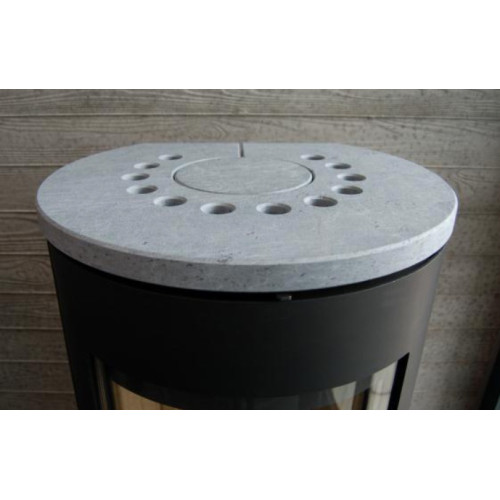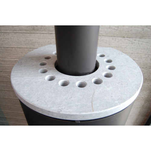Na horní část krbových kamen je možné pořídit kamennou desku (mastek nebo pískovec), fotografie níže v galerii. Tyto světlé kameny tvoří krásný kontrast s černým pláštěm kamen.